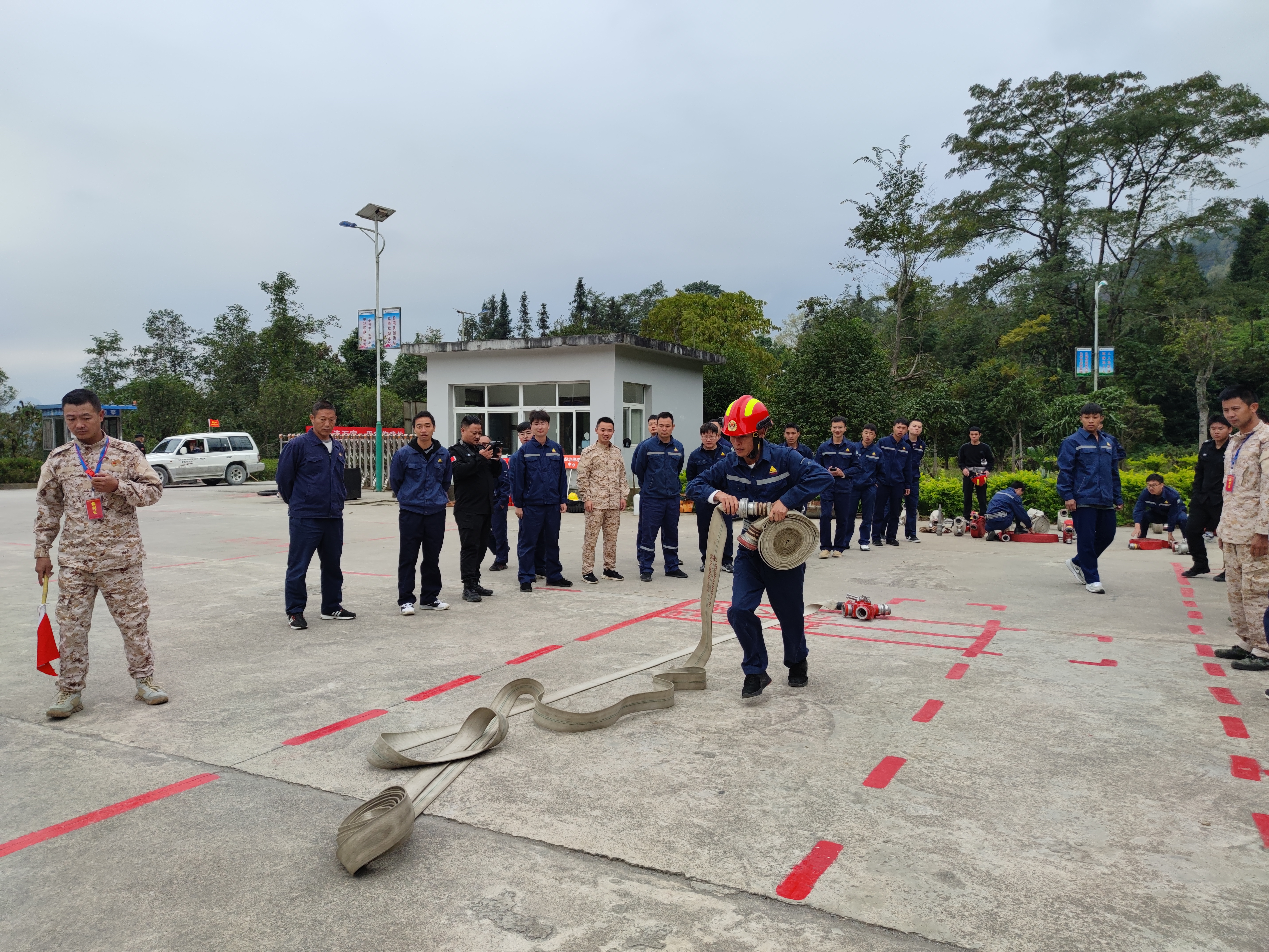 11月9日,華聯鋅銦在新田選礦車間訓練場組織開展“11·9”消防技能比武競賽,由各基層工會48名職工組成的8支專(兼)職消防應急救援隊參賽。