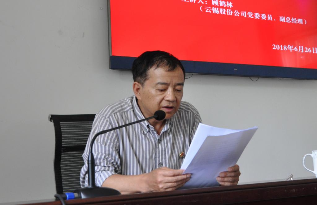 6月26日,錫業(yè)股份黨委委員、副總經(jīng)理顧鶴林結(jié)合錫化工產(chǎn)業(yè)發(fā)展的實(shí)際,圍繞如何“學(xué)懂弄通做實(shí)”十九大精神,以《踐行十九大精神、做新時(shí)代黨員》為主題,為化工材料分公司的黨員干部講了一堂黨風(fēng)廉政建設(shè)專題黨課。