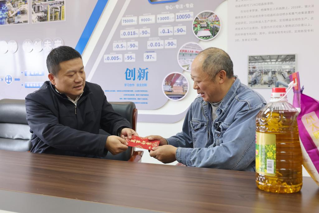 “過節好!提前給您和家人拜個年!”“現在身體怎么樣?”家里還有什么困難?“孩子還有幾年畢業?”……每到一處,聲聲問候,都如暖流般滋潤人心;句句關懷,盡顯情真意切。錫業股份領導班子成員與慰問對象及其家屬圍坐一團,親切交談,細致入微地詢問他們的身體狀況、生活情況等,細心聽取他們對公司發展的寶貴意見。公司領導感謝離休干部、老黨員為公司發展做出的貢獻,叮囑他們保重身體,享受健康生活;向辛勤付出和無私奉獻的勞模致以崇高敬意,希望他們繼續發揚模范帶頭作用,在技術創新、攻關創效方面發光發熱;鼓勵困難職工、困難黨員保持積極樂觀向上的精神狀態,相信在企業大家庭的幫助下,日子會過得越來越好。