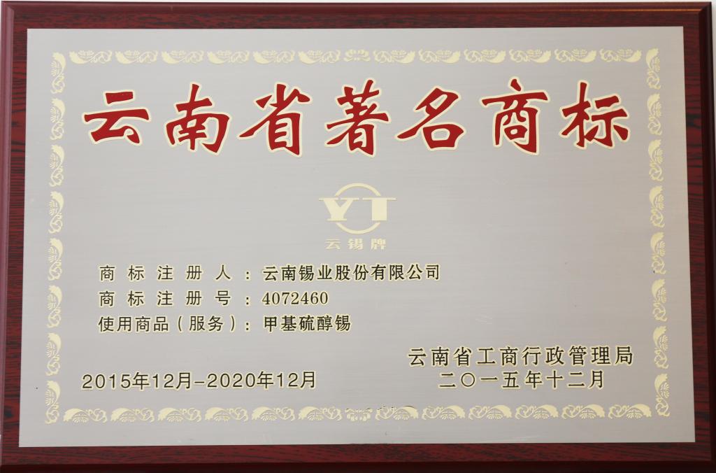 下一條:甲基硫醇錫、二丁基二氧化錫、二丁基氧化錫、偏錫酸、焦磷酸亞錫為云南省著名商標(biāo)