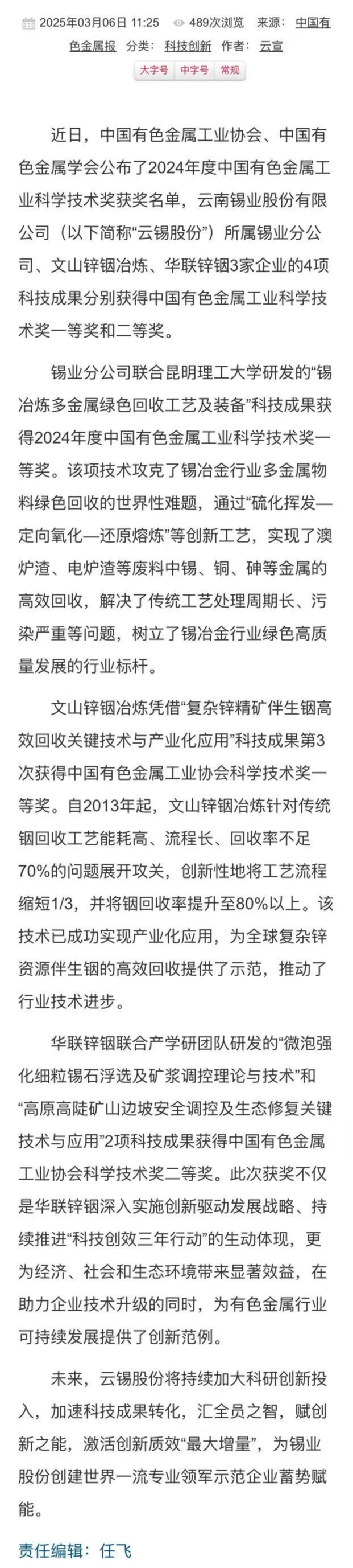 下一條:國務院國資委、云南國資、中國有色金屬報:云錫股份構筑競爭新優(yōu)勢 奮進“開門紅”